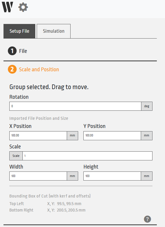 The positioning of your components has changed where the X and Y coordinates that are displayed or entered in the “Scale and Position” menu now refer to the position of the imported file and not the cutting path. In most cases this will not affect your workflow, however if you are cutting fixtures for accurate positioning later, this should make it easier and more intuitive for locating parts. Additionally, the “Bounding Box of Cut” is displayed at the bottom of this menu, which displays the overall cutting extents of the file path being cut including the kerf and any applied offsets.