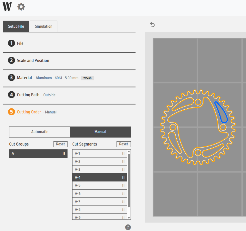 The new “Cutting Order” workflow item allows you to organize cut groups and segments with greater precision. The upgraded V2.4 algorithm attempts to automatically calculate the most efficient cutting sequence.  Furthermore, you can now attain full reordering control via a manual override, allowing you to specify the exact order of each segment.