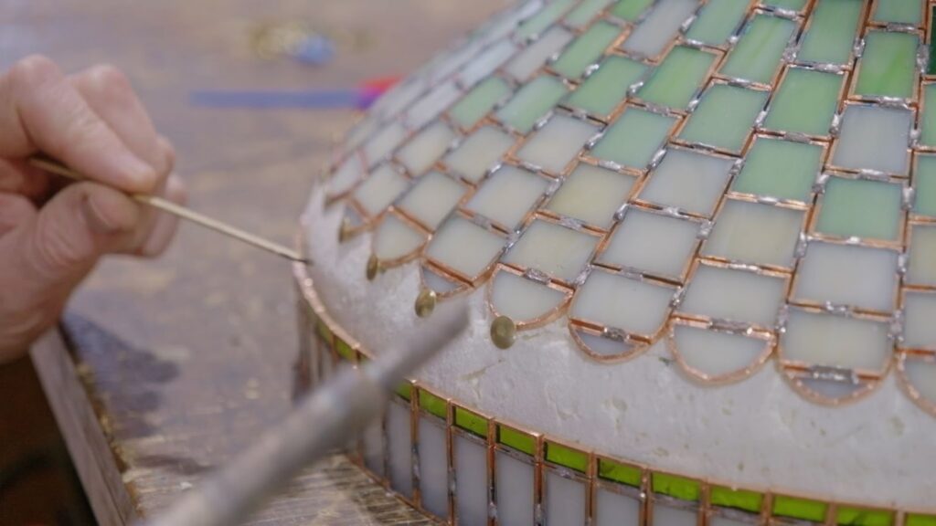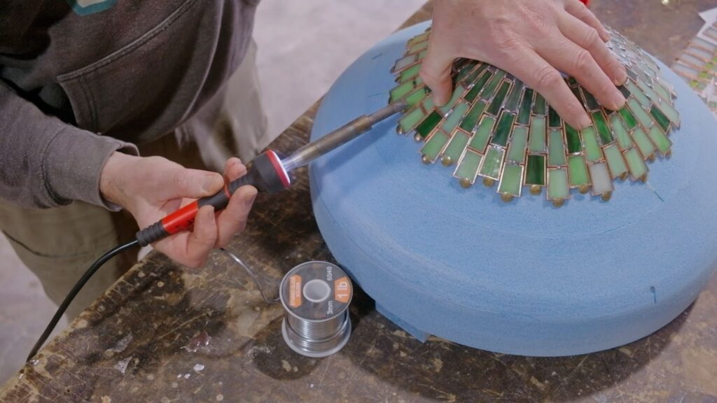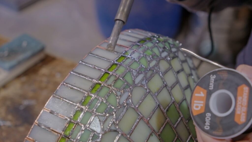By the time soldering began, the scale of the project was evident not only in the number of parts, but in the cumulative labor. Pask estimates five to six days just to foil all the glass pieces, even after the cutting process was accelerated
